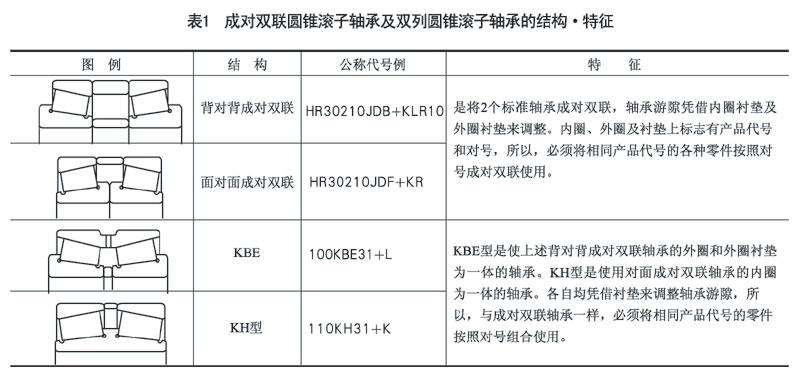 成对双联圆锥滚子轴承及双列圆锥滚子轴承的结构、特征