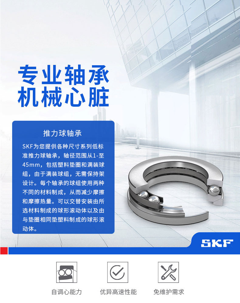 SKF推力球轴承主要用于汽车、机床等行业。